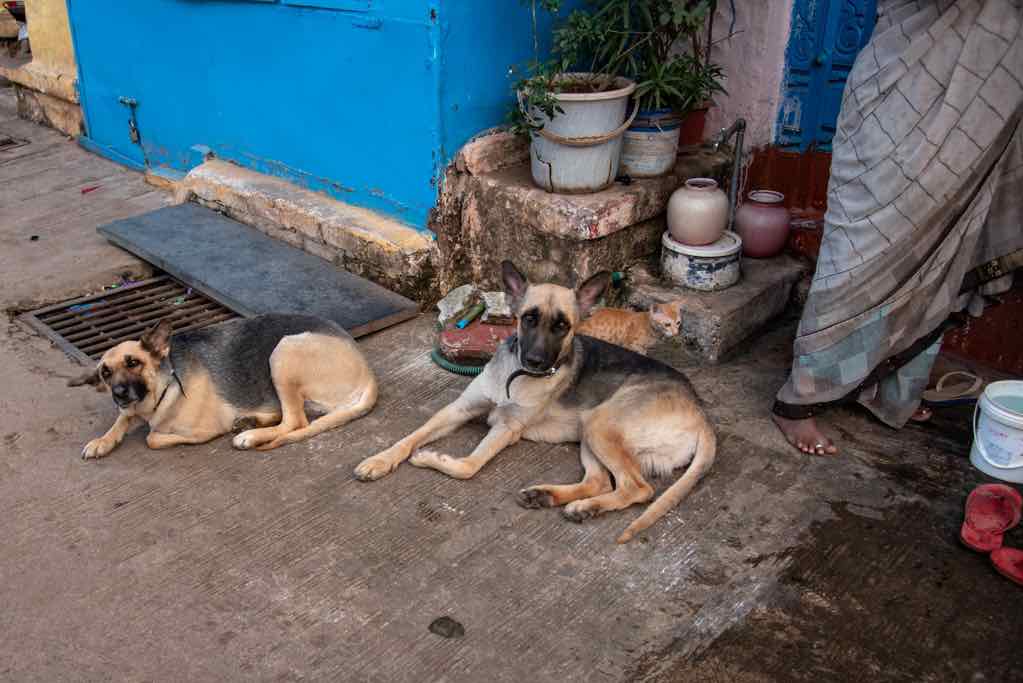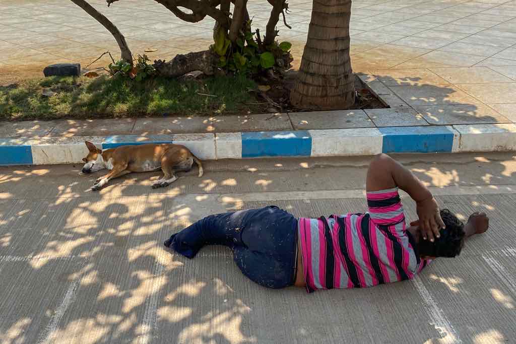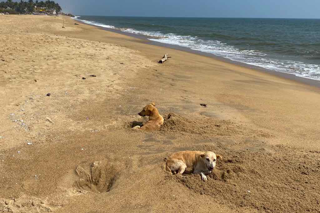 • South India, Tamil Nadu, Bengal Sea, Dogs looking for Freshness in the Sand
