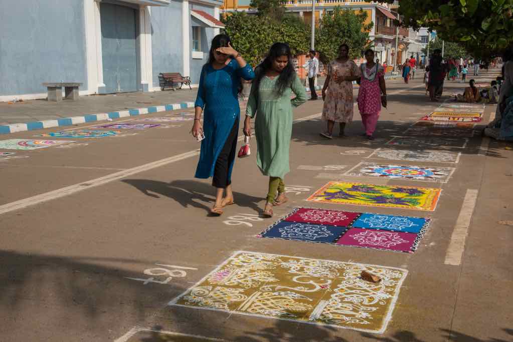 • South India, Tamil Nadu, Pondicherry, Kolam Street festival during Pongal