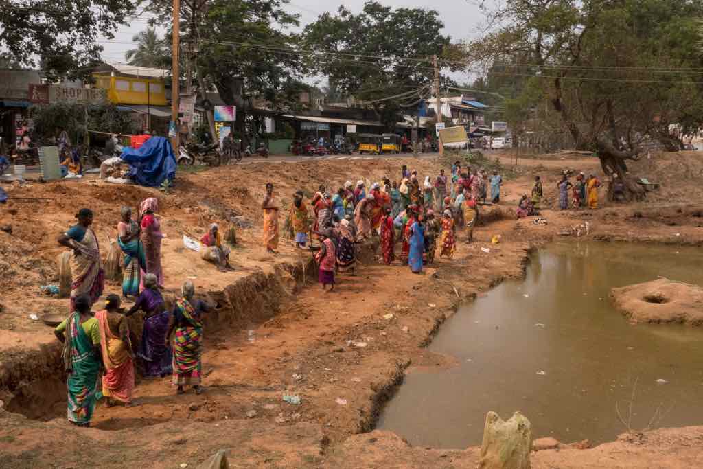 • South India, Tamil Nadu, Community of Women cleaning a Pelvis